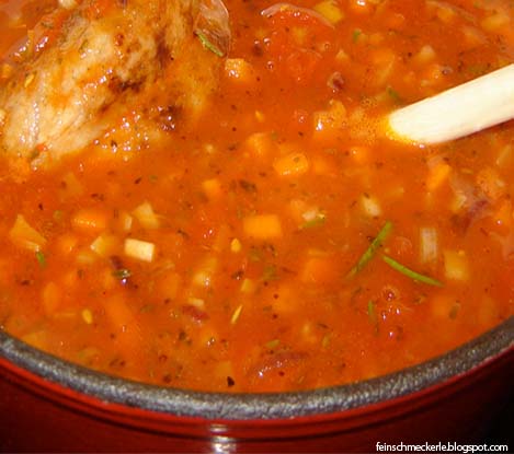 Auf kleiner Flamme ca. 3 h köcheln lassen. Immer mal wieder mit Brühe oder Wein aufgiessen…