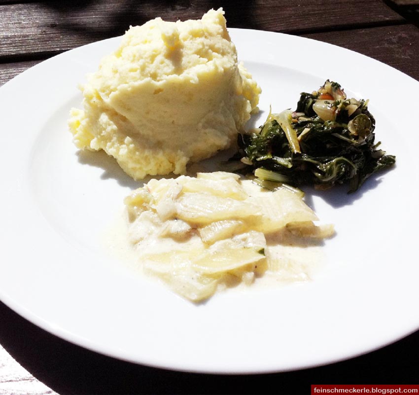 Kollege R. hat sich was Feines ausgedacht. Ricotta-Parmesan-Pü mit zweierlei Mangold… für uns alle, die wir Mangold nicht so oft auf dem Speiseplan haben, war das ein echtes Highlight!
