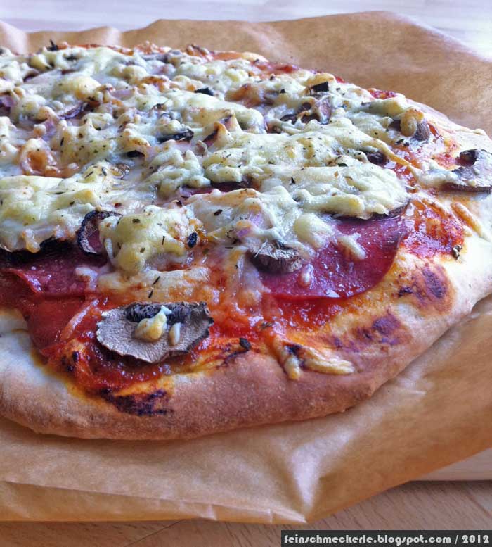 Plane ich das Pizzaessen ein paar Tage im Voraus gibt’s DEN legendären Teig von Frau Deichrunner. Der schmeckt genial – sollte aber ein paar Tage im Kühlschrank gehen. I