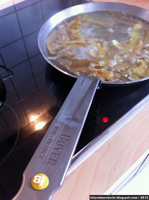 Zumindest bis zum Urlaub, in dem wir unseren Lieblingsküchenkramladen besuchten. Dort werden De Buyer Eisenpfannen geführt, die fantastisch sein sollen – und lediglich mit Wasser und Kartoffeln „eingebranntkocht“ werden. Sofort war die Pfanne gekauft und wurde am darauffolgenden Wochenende bearbeitet…