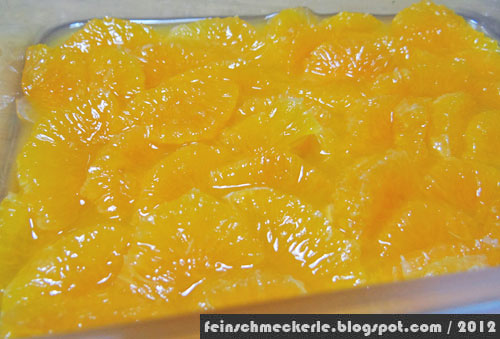 - Dann die klein geschnittenen Filets der 3 Mandarinen zugeben