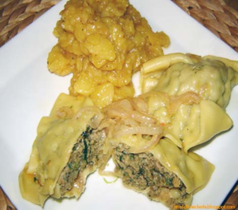 Die perfekte Symbiose ergibt der Kartoffelsalat mit geschmälzten Maultaschen. Des Schwaben kleiner, kulinarischer Glücksmoment!