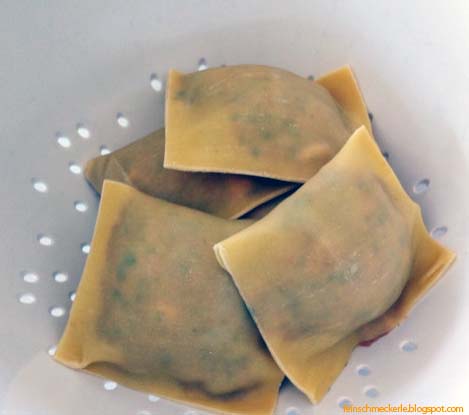 So lange weiter schichten, bis der Sud verbraucht ist. Ich bilde mir ein, dass die Kartoffeln so schneller den Sud aufsaugen.Danach etwas neutrales Sonnenblumenöl dazu geben. Bei Oma durfte auch ein Schuss Maggi nicht fehlen 😉