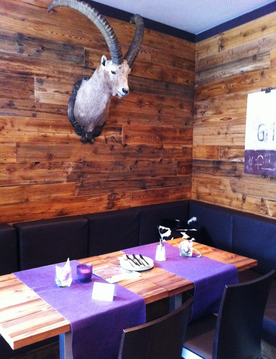In Sachen Einrichtung wurde wirklich alles herausgeholt, was möglich war. Rustikale Holztische, moderne, aber bequeme Stühle laden zum Sitzen ein. Es gibt eine ganz nette Außenterrasse. Trotzdem ist es natürlich ein Restaurant in einem Einkaufszentrum. Glücklicherweise aber direkt am Ausgang. Ich nehme mir auch ganz gerne das Essen mit, um es dann auf unserer Büroterrasse zu verspeisen. Gerade wenn die Sonne scheint ist das natürlich noch mal etwas schöner …