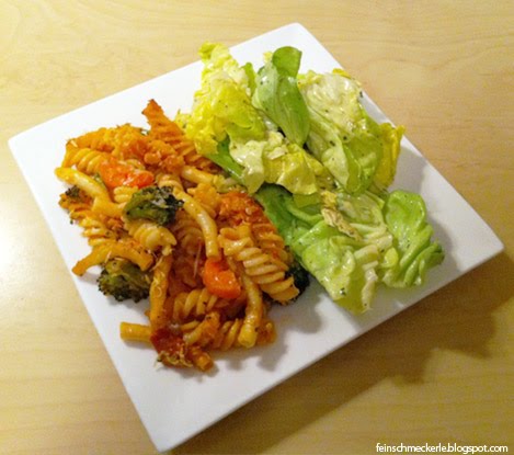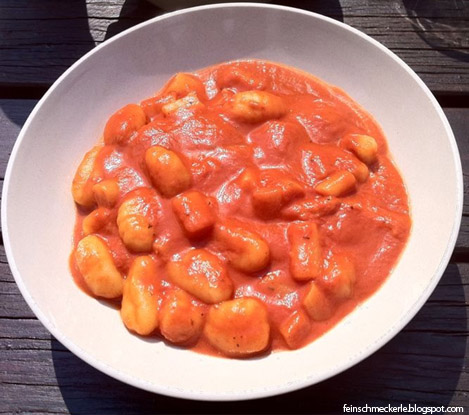 - Tomatensauce mit ein wenig Crème fraîche verfeinern