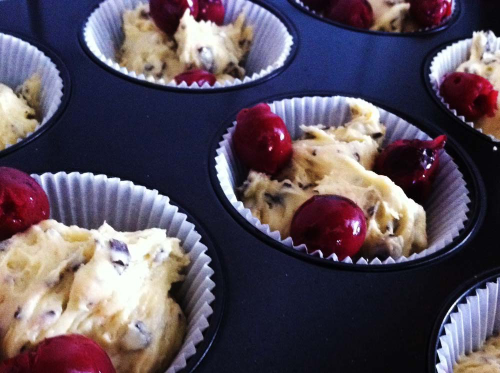 - Teig in die Muffinmulden füllen (die man entweder gefettet oder mit einem Papierförmchen ausgekleidet hat)
