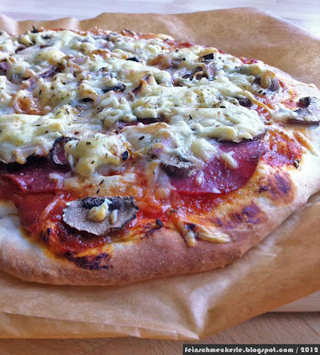 Plane ich das Pizzaessen ein paar Tage im Voraus gibt’s DEN legendären Teig von Frau Deichrunner. Der schmeckt genial – sollte aber ein paar Tage im Kühlschrank gehen. I