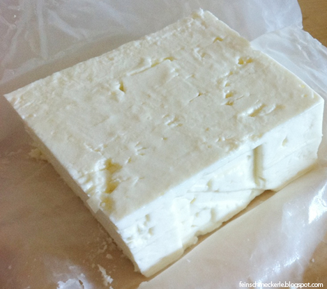 - 250 g besten Feta klein schneiden (mein Favorit ist von Dodoni, gibts bei uns im Süden auch in türkirschen Supermärkten, entweder an der Theke oder abgepackt in Lake im Kühlregal)