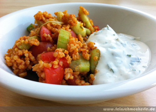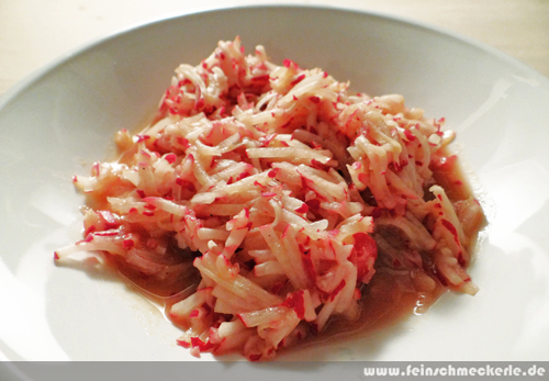 - in 1 TL Olivenöl anschwitzen, Prise Zucker dazu geben und kurz weiter schmoren