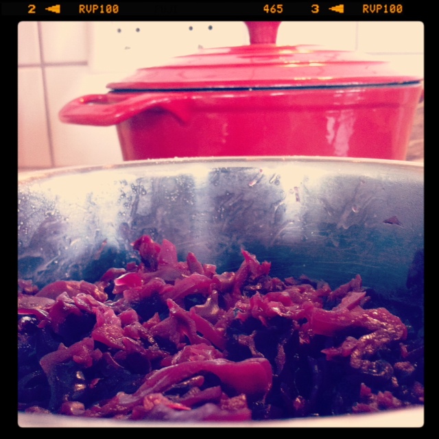 - 300 g rote Zwiebeln in feine Ringe schneiden