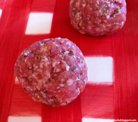- Aus Hackmasse mit angefeuchteten Händen kleine Bällchen formen