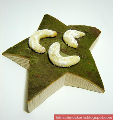 - Heiße Kipferl vorsichtig darin wälzen (wir: die Kipferl damit bestäuben – die sind nämlich so mürb, dass sie gleich zerbrechen…)