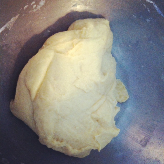 Der Teig fühlte sich beim Kneten in der Kitchenaid ein wenig an wie Beton. Verarbeiten liess er sich jedoch ganz ausgezeichnet. Ich brauchte weder besonders viel Mehl oder Wasser, da war nichts klebrig und glitschig.